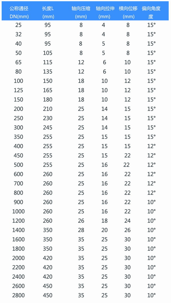 限位橡膠接頭參數(shù)表: